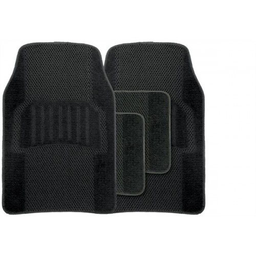 - 4 Piece Stain Resistant Carpet Mat Set in Black