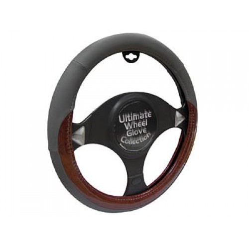 Black Sports with Wood Effect Steering Wheel Glove