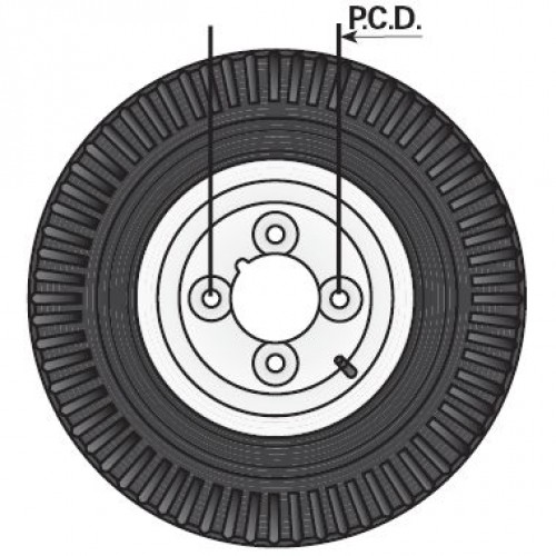 145x10" trailer wheel with 4ply high speed tyre. 4 studs on 4" P.C.D. and load capacity 315kg at 100..